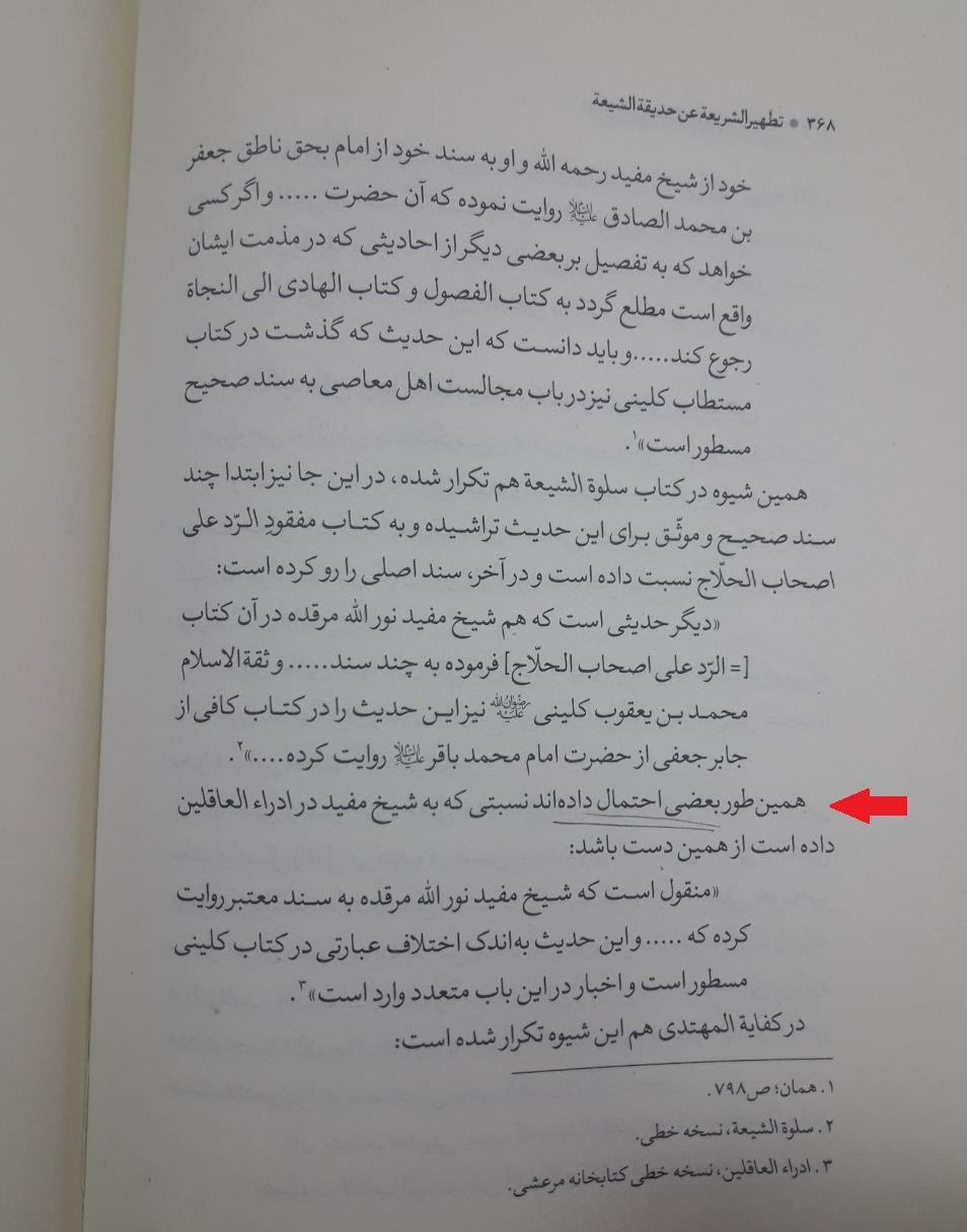 آقای وکیلی در پاورقی ص۳۱۷ کتاب تطهیر الشریعه مینویسد: