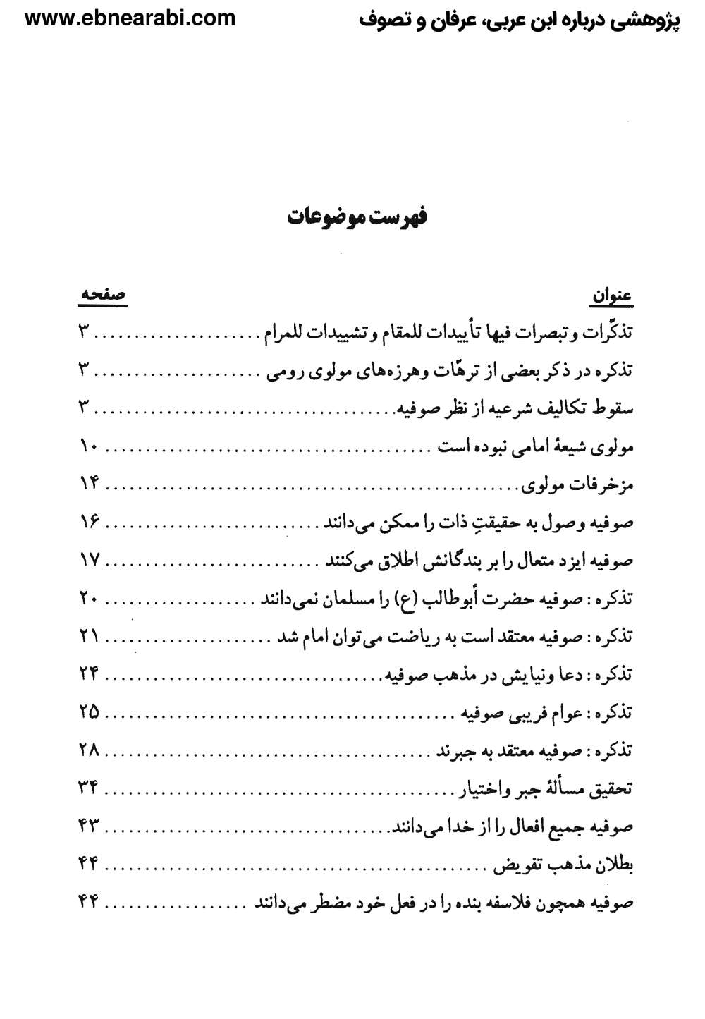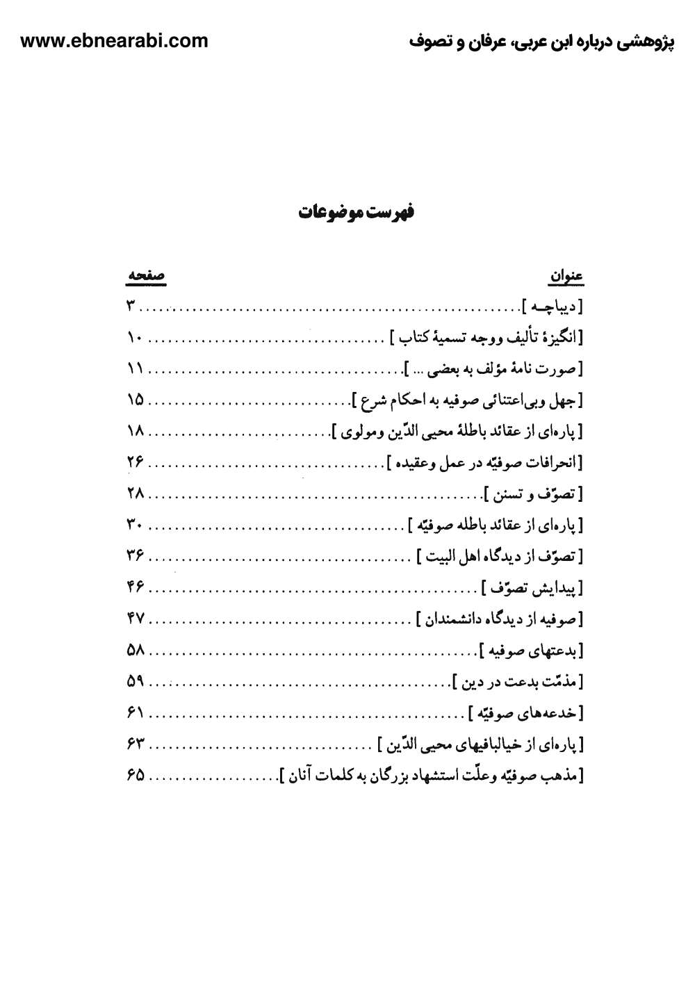 این کتاب که در دو جلد منتشر شده، حاوی شواهد فراوانی از انحرافات و بدعتهای صوفیه است. بهبهانی در ابتدای جلد اول این کتاب، صوفیه را جماعتی بیاعتنا به احکام شریعت و اباحهگرا معرفی میکند[2] و سپس در بخشهای مختلف کتاب به نقد آراء برخی از بزرگان صوفیه از جمله ابن عربی و مولوی میپردازد.[3]